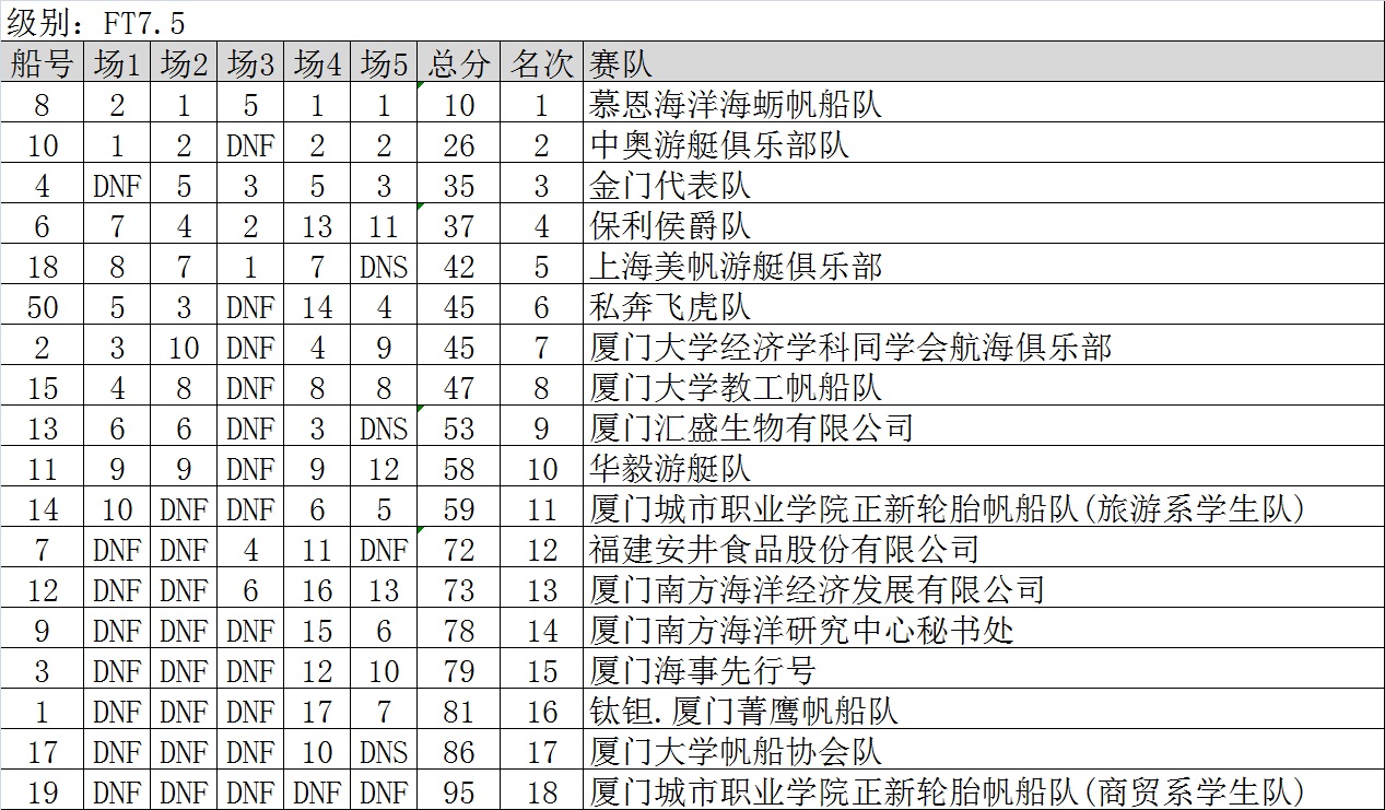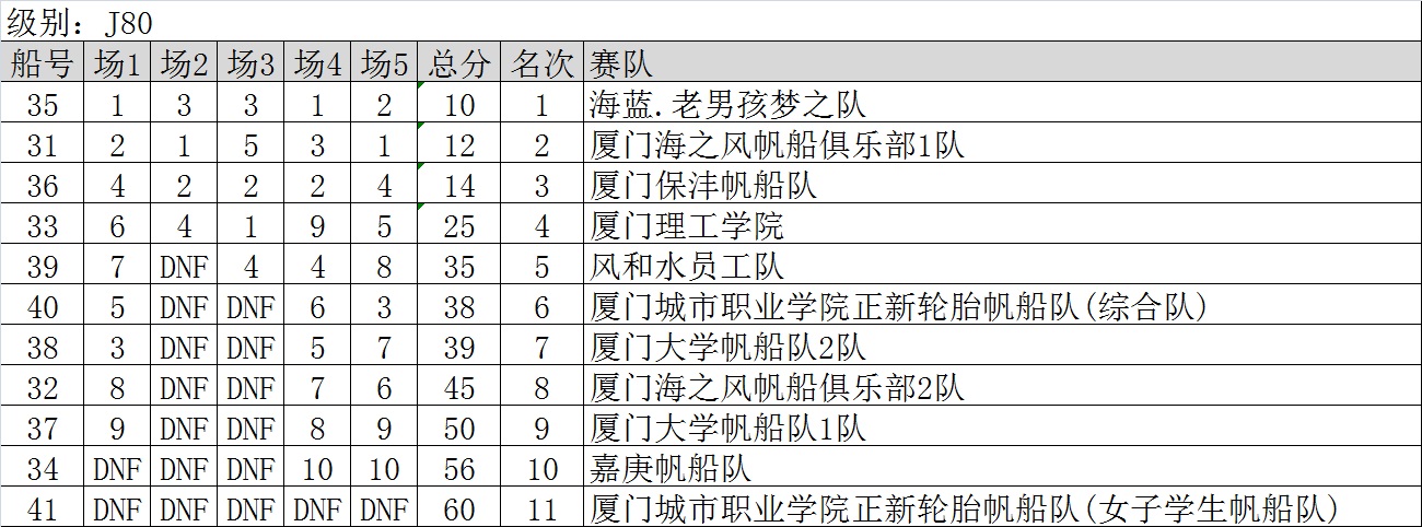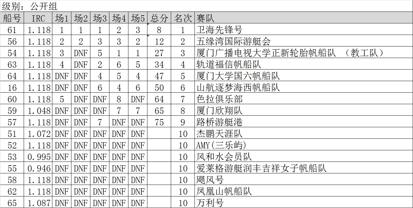 >2015厦门新年帆船赛成绩表