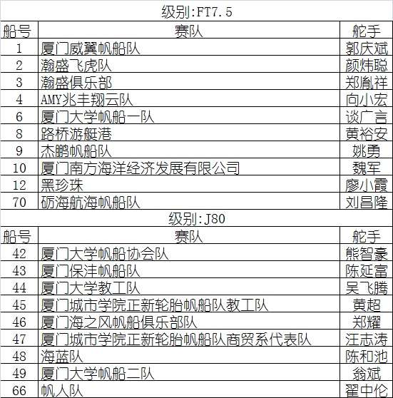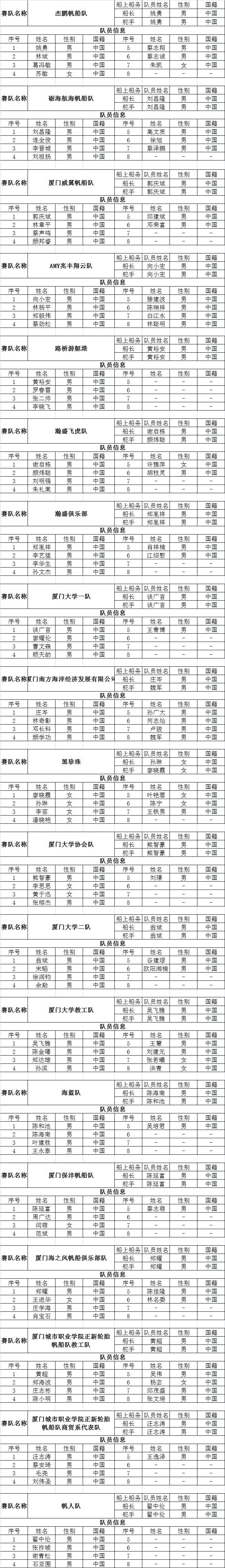 >2015厦门市帆船游艇运动协会联赛参赛选手名单公示