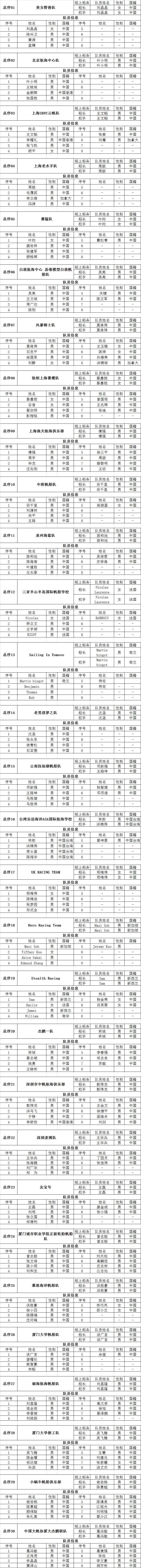 第11届中国“俱乐部杯”帆船挑战赛赛队及选手公示