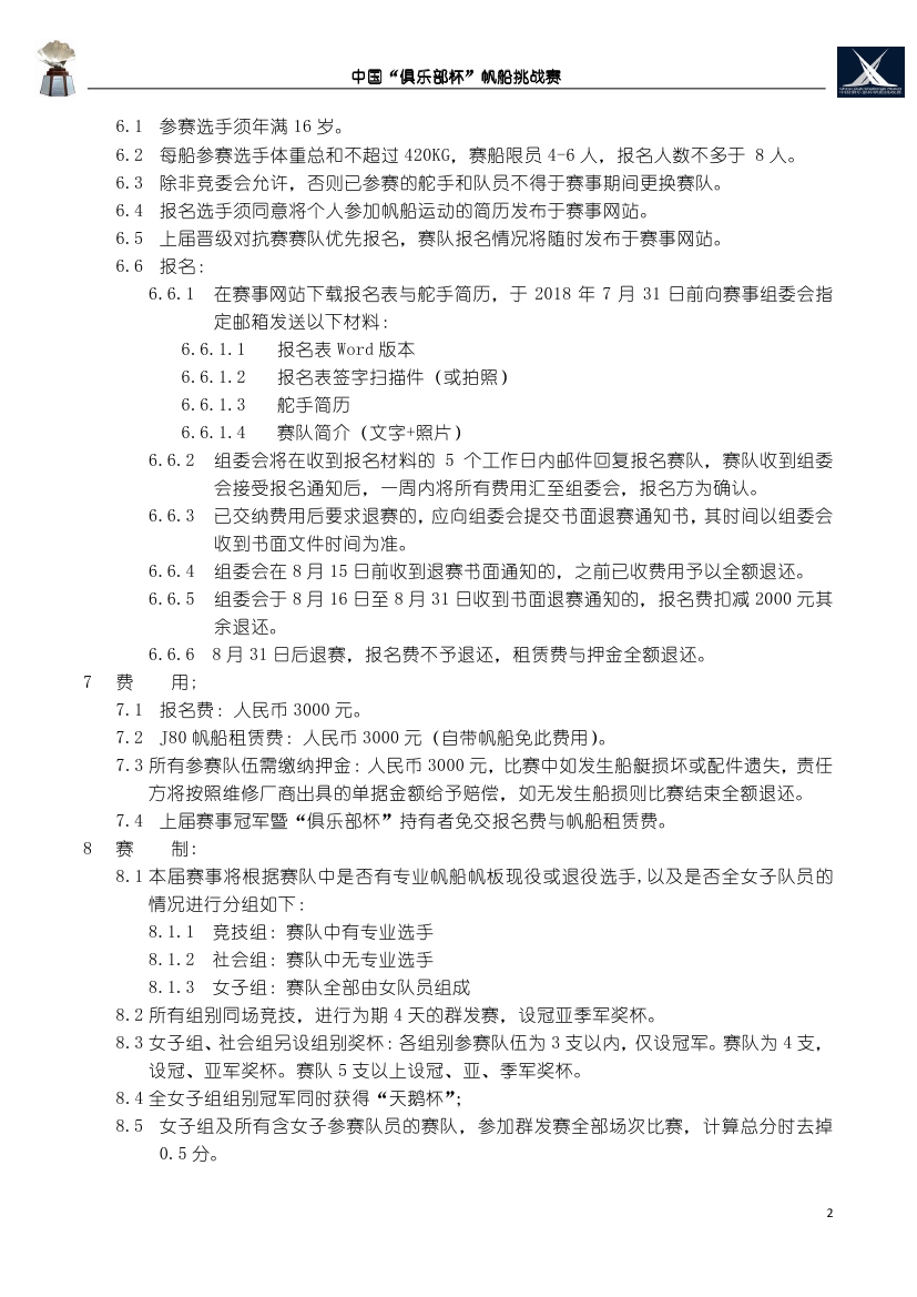 >第14届中国“俱乐部杯”帆船挑战赛 竞赛通知